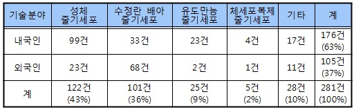 - 특허청, 줄기세포 치료제의 특허출원 동향 발표