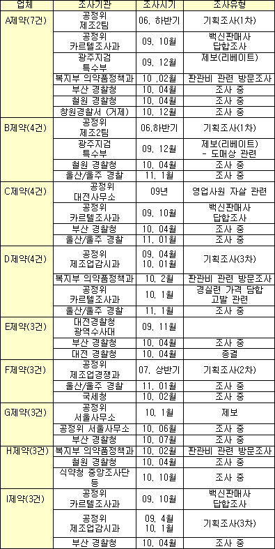 리베이트 조사가 진행된 제약사는 주로 상위제약사들이 대부분 이었으며 다국적제약사와 대기업계열도 포함돼 있는 것으로 파악됐다. 하지만 이같은 고강도 리베이트 조사로 인한 부작용도 만만치 않았던 것으로 분석됐다.