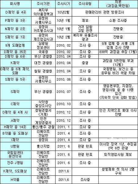 전방위 리베이트 조사 압박 '5년'…제약 56곳 연루