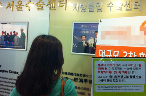 하지만 병원에서 만난 김모(24)씨는 "상담을 받으러 왔다가 부가세 이야기를 들었다"면서 "수술을 하게 된다면 7월이 되기 전에 해야겠다는 생각이 가장 먼저 들었다. 부담스러운 가격인상"이라고 말했다.
