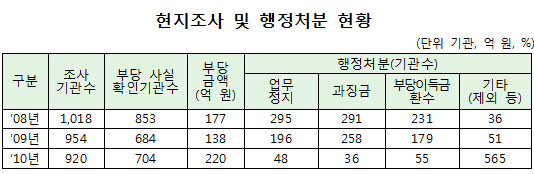 권익위는 행정처분의 실효성을 확보하기 위해 과징금 체납 또는 지연 시 과징금 처분을 취소, 업무정지로 변경해 처분할 수 있도록 근거규정을 마련하도록 권고하는 한편 현지조사 등의 조사거부 기관에 대해 업무정지 기간을 1년에서 2년으로 연장하는 등 엄격한 처분을 적용하도록 했다.