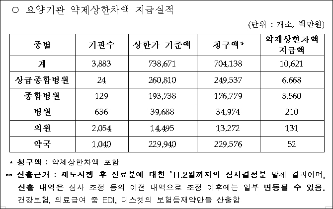 이 기간동안 해당 요양기관은 7234억9800만원어치를 청구해 약제상한차액(인센티브)으로 106억2100만원을 받았다.