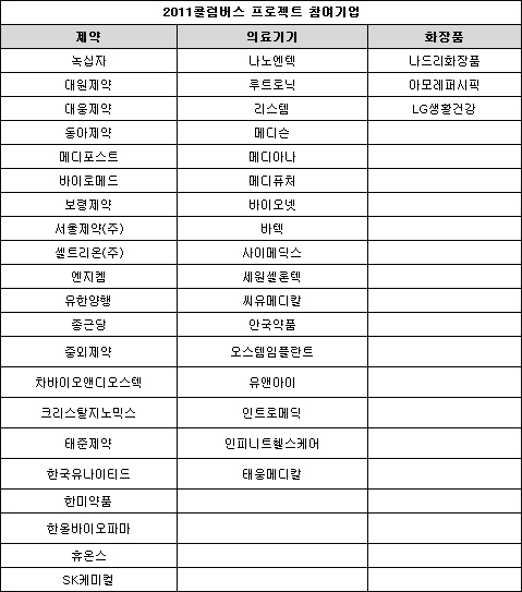 동아제약 등 제약사 21곳이 정부가 마련한 북미 시장진출 특화전략, 이른바 ‘콜럼버스 프로젝트’ 참여 기업에 선정됐다.