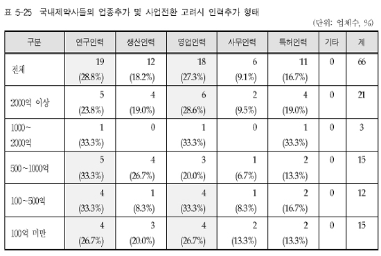 우수인력 확보에 목말라했던 500억~1천억 미만 제약사는 마찬가지로 '연구인력'에 욕심을 내는 기업 비율이 높았다.