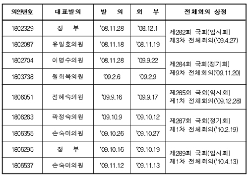 곽정숙의원안은 의약품의 안전성 및 부작용 등에 관한 정보의 수집.관리 등의 업무를 수행하기 위해 한국의약품부작용 관리센터를, 손숙미의원안은 의약품등의 안전과 관련된 각종 정보의 수집.관리.분석.평가 및 제공 업무를 수행하기 위해 한국의약품안전정보관리원을 설립하는 내용이 골자다.