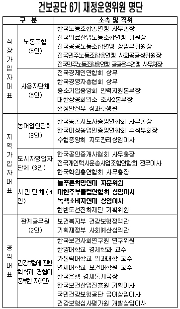 보건복지부는 4일 공단 6기 재정운영위 명단을 확정짓고 해당 단체에 통보했다.