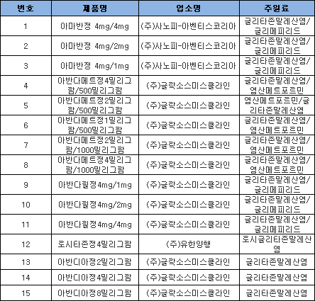 대상약제는 ‘아반디아’ 3개 함량과 복합제 ‘아반다릴’, ‘아마반’, ‘아반다메트’, 제네릭인 ‘로시타존’ 등이다.