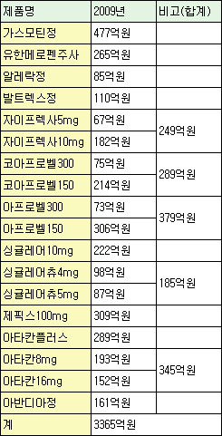 대형 품목들의 특허만료는 내년에도 잇따른다.