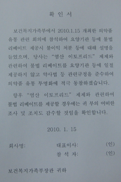 가나톤의 경우 보건복지부가 제네릭 출시 제약사들을 대상으로 의약품 유통 투명화 내용을 담은 '서약서'를 받은 바 있다. 제약회사를 대상으로 투명거래를 다짐하는 서약서를 받은 것은 사상 처음이었다.