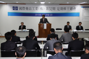 특히 주력 제품인 '타겐F' 의 시장 점유율 확대와 개량신약인 항구토제 '온단세트론정' 과 철결핍증 치료제 '페로빈 주'의 라이센스인과 자체 제형 연구개발한 제품인 항생제 '국제세프록사딘캡슐' '국제세팔렉신캡슐' 등을 출시해 올해 매출 1350억, 순이익 72억의 목표를 세우고 전 임직원이 혼신의 힘을 다해 노력하겠다고 말했다.