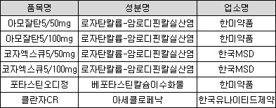 같은 제품인 아모잘탄과 코자엑스 큐가 용량을 달리하여 총 4품목이 허가받았고, 올들어 한미의 '포타스틴오디정', 한국유나이티드의 '클란자CR'정이 개량신약으로 인정받았다.