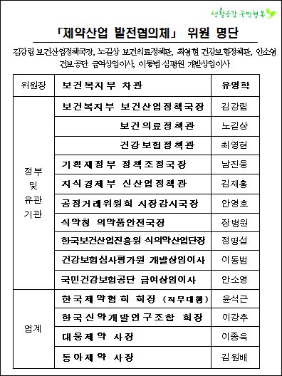 유영학 복지부 차관을 위원장으로 하는 협의체에는 윤석근(일성신약) 제약협회 직무대행 등 제약사 대표 3명도 위원으로 선임됐다.