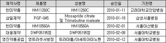삼일제약은 가스모틴과 트리메부틴 복합제인 'PGF-045'를 지난 1월 18일 임상1상 시험을 승인받았다. 소화불량치료제 가스모틴은 내년 3월 특허가 만료돼 있어, 삼일의 복합제 개발 성공여부에 관심이 집중되고 있다.