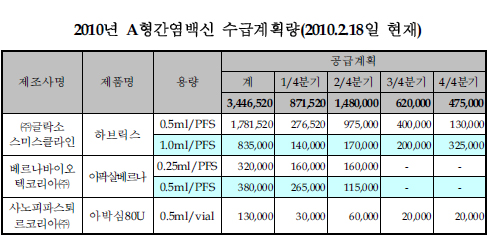 GSK는 2010년 상반기에만 156만1520도즈를 공급하고 올해 총 261만6520도즈를 공급할 계획이다. 이는 지난해에 비하면 4.57배에 이르는 수준이다.