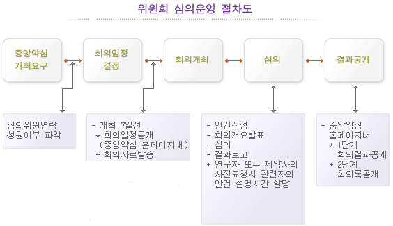 복지부 예규 제658호 중앙약심 규정 제8조3항과 4항에서는 "회의는 심의안건 관련 이해당사자 참여 등 공개진행을 원칙으로 한다"는 내용과 "회의 전 과정 및 회의결과 등은 보건복지부 또는 식약청 홈페이지를 통해 공개하는 것을 원칙으로 한다"고 나와 있다.