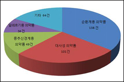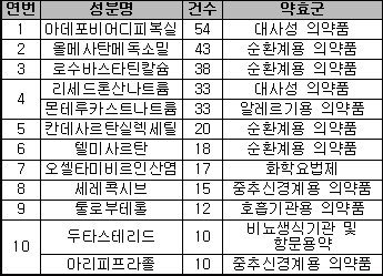 약효군 별로는 고혈압치료제, 고지혈증치료제, 동맥경화치료제 등이 포함된 순환계용 의약품이 138품목(35.8%) 승인돼 가장 많이 개발됐다.