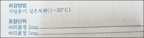 실제 2mg 제품은 보관방법에 '차광'이 표기돼 있는 반면, 5mg 제품에는 언급이 없었다.