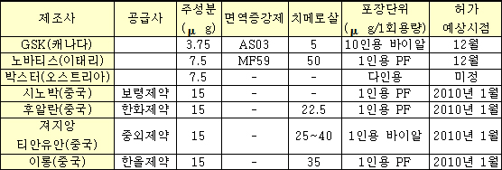 따라서 면역증강제 사용백신이 추가로 공급되는 녹십자와 함께 내년초 부터는 신종플루 백신 공급 경쟁이 치열해질 것으로 전망된다.