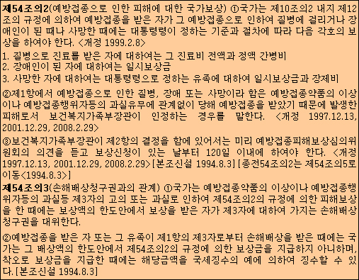 현행 전염병예방법에서 피해보상의 1차적인 책임을 국가에 지우고 있기 때문에 피해구제를 위한 소송에서 제약사는 일단 피소대상에서 제외된다.