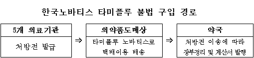 한국노바티스는 직원명단 495명을 일괄 작성해 내원하지 않고 의료기관 5개소에 전달해 처방전을 발급 받았고, 거래 도매상을 통해 약국을 거치지 않고 직접 타미플루를 택배로 배송 받았다.