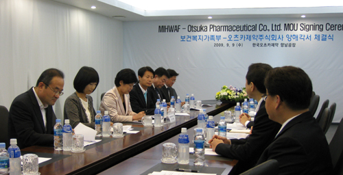 보건복지가족부 전재희 장관과 오츠카제약 이와모토 사장은 9일 경기도 화성시에 위치한 한국오츠카 향남공장에서 이 같은 내용의 양해각서(MOU)에 서명했다.