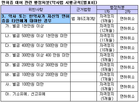 복지부 관계자는 이와관련 "해당 약사들의 자격정지 기간은 형사처벌 수위에 달렸다"면서 "검찰 조사 과정에서 부당금액, 면대 기간, 초범이나 재범 여부를 따져 처벌(벌금) 수위가 결정되면, 행정처분 의뢰 절차에 따라 처분이 이뤄질 것"이라고 설명했다.