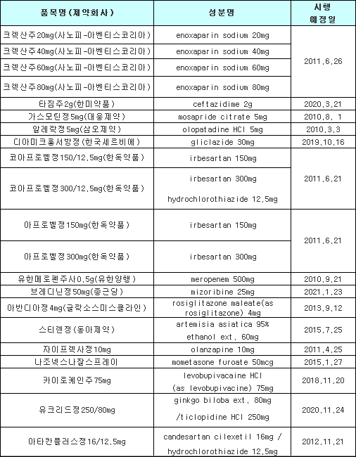제네릭사는 특허만료일 다음날인 2021년 1월24일 발매하겠다면서 벌써 급여목록에 복제약을 등재시켰다.