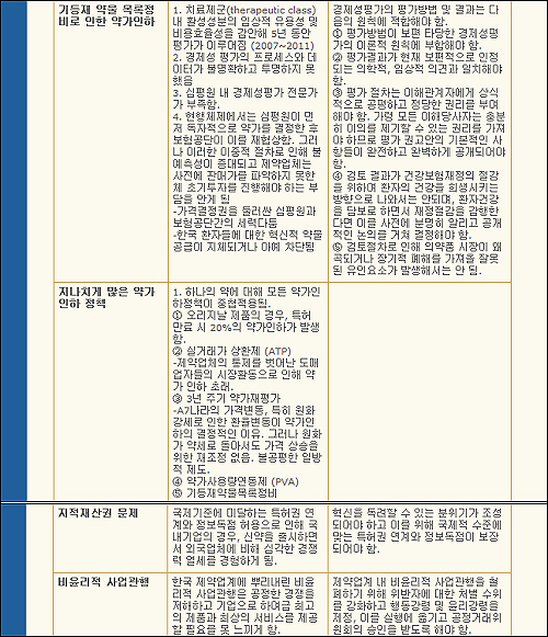 부수적으로는 가격결정권을 둘러싼 심평원과 공단간의 세력다툼, 혁신적 약품 공급 지체 또는 환자에 대한 접근 차단 등이 초래되고 있다고 지적했다.