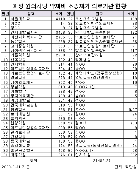 서울대병원은 41억1100만원의 소가로 가장 큰 규모의 원외처방 약제비 환수소송을 진행중인 것으로 나타났다.
