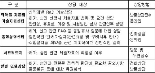 의약품제품화 기술지원센터, 종합상담센터, 사전검토제, 일반 민원상담 등 상담채널이 다양해진 만큼 상담 과정에서의 일관성을 확보하고 업무를 체계화함으로써 업계의 편리성을 도모하겠다는 것.