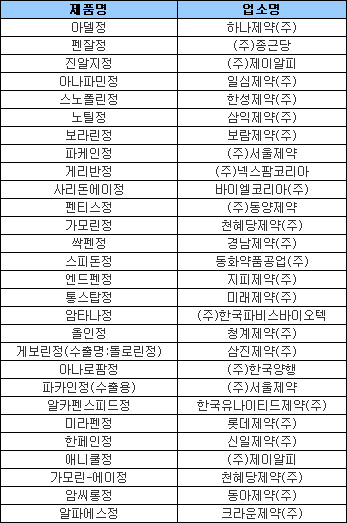 "게보린 등 28개 품목 복약지도 주의하세요"