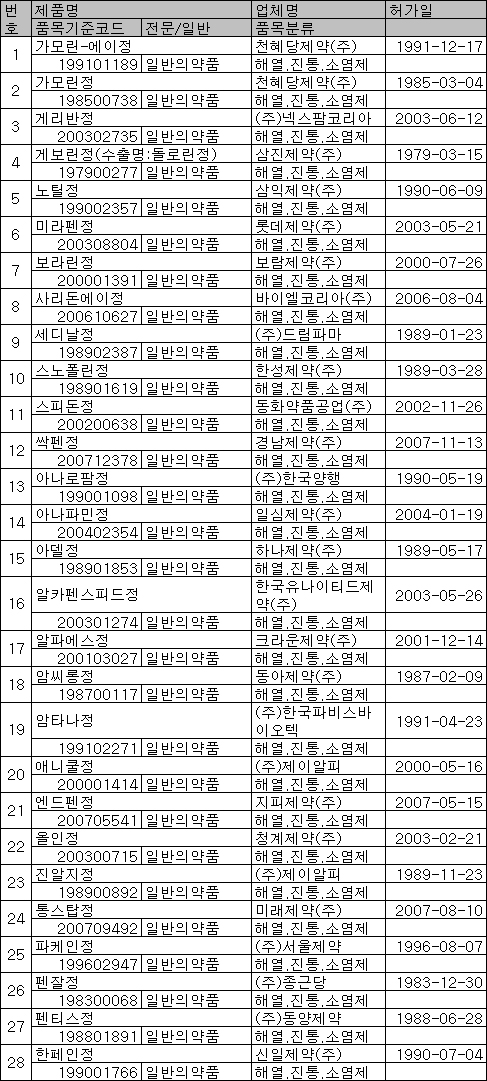 한편 식약청은 약사회 등 전문가 단체에 의뢰해 현장에서 곧바로 새 기준이 적용되도록 할 계획이다.