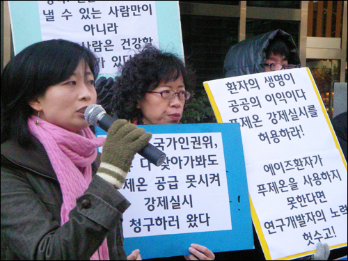 이들 단체는 기자회견에서 “특허권은 생명권을 넘어설 수 없다”면서 “에이즈감염인연대와 정보공유연대 명의로 강제실시를 청구한다”고 밝혔다.