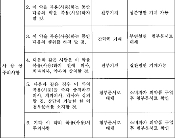 - 식약청, 용법·용량-경고-금기 사항 등 주요내용만 기재