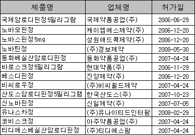 한편 ‘노바스크’ 제네릭은 국제 등 13개 제약사가 현재 시판허가를 받아놓은 상태다.