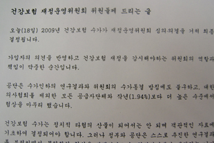 건강연대는 "정부와 공단은 협상 성사에만 매달린 나머지 과도한 수가인상을 자초했다는 비판을 피하기 어렵다"며 "재정운영위 위원들이 가입자들을 대표해 신중한 결정을 내려야 한다"고 강조했다.