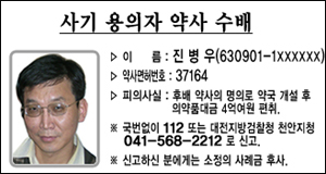 생활이 어려운 후배 약사에게 접근해 면허대여를 미끼로 4~5억의 사기행각을 벌이고 잠적한 천안 지역 약사 진병우(46·남) 씨가 현상수배 1년만인 지난 24일, 한 약사의 신고로 여수에서 붙잡혔다.