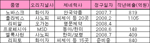 또 MSD는 동아·한미와 분쟁중인 탈모치료약 ‘프로페시아’, 오가논은 골다공증약 ‘리비알’이 최종판결을 기다리고 있다.