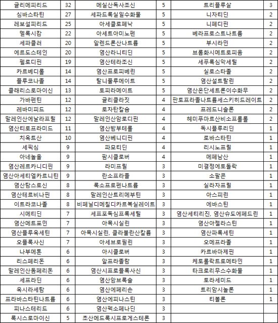 성분별로는 환자들에 많이 처방되는 다빈도 성분들이 대거 목록에 포함됐다.