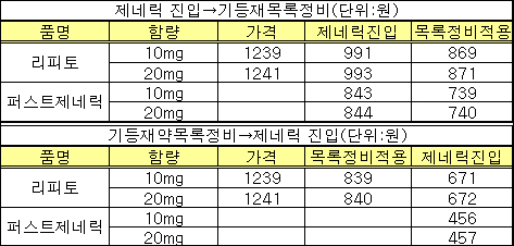 리피토 제네릭 약가 283원 '널뛰기'