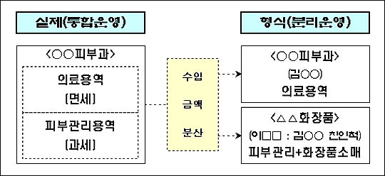 이들은 현금결제시 할인해주겠다는 수법으로 현금영수증을 발행하지 않고 현금결제를 유도했으며, 피부관리실을 별도로 설치한 후 피부관리사를 고용, 피부관리용역을 제공했다.