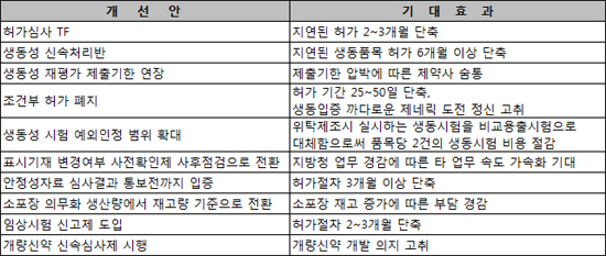 무려 40여개에 달하는 개선대책 가운데 제약업계로부터 가장 환영을 받는 부분은 그동안 제약업계의 가장 큰 염원 중 하나였던 허가 절차의 간소화다.