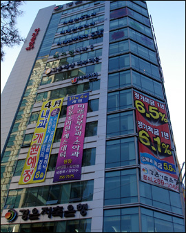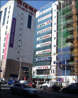 인근의 또다른 P클리닉빌딩에도 치과와 내과, 피부과, 외과의원을 유치하기 위해 플래카드를 내걸고 있으며, 역시 평당 4000만원의 가격으로 1층에 약국임대를 추진하고 있다.