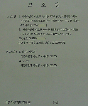 14일 공단 사보노조는 의협의 경영 및 관리운영 행태와 관련된 지적이 명백한 명예훼손 및 허위사실 유포 등의 혐의가 있다는 판단에 따라 지부장과 조합원 각 1명의 명의로 서울서부지방검청에 고소장을 접수시킨 것으로 확인됐다.