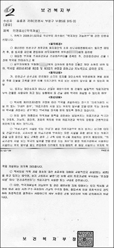 부평구약사회 송종경 회장이 최근 관내 성모자애병원이 건강증진센터 1층에 약국을 개설하려는 움짐임과 관련 지난 2일 ‘약국개설 가능여부’에 대해 질의했으며, 복지부는 12일자로 이같이 회신했다.