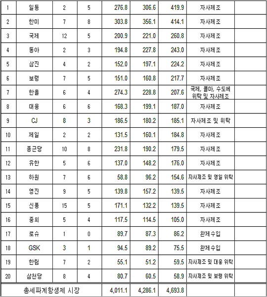 - 111개 제약사 경쟁 치열, 7%이상 성장세