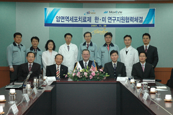 이어 "바이넥스가 차세대 성장동력산업인 세포치료제 개발을 통해 세계시장에 진출하는 성공적인 사례로서 그동안 비스칸 등 주력제품의 동남아 수출과 더불어 글로벌 제약기업으로 발돋움할 수 있는 이정표가 될 것으로 기대하고 있다"며 "국내외 암세포 치료의 선두주자로서 세계시장에서 주도적인 역할을 해 나갈 수 있을 것"이라고 강조했다.