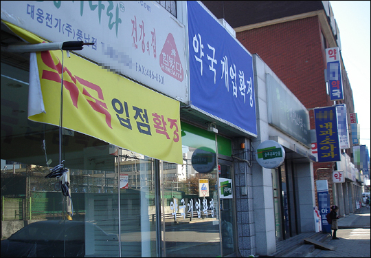 이들은 모두 2002년 이 곳에 서로 마주보고 둥지를 틀었지만, 최근 양측의 관계가 악화되자 동일상가에 나란히 약국을 개설하겠다며 신경전을 벌이고 있는 것.