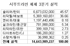 리덕틸은 3분기 53억6900여만원의 실적으로, 공급가격을 절반수준으로 내리며 시장방어에 나섰으나 결국 슬리머에 뒤쳐진 것으로 조사됐다.