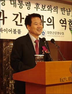 정 후보는 이날 오전 7시30분 서울 소공동 롯데호텔에서 간호정우회가 주최한 ‘정동영 대통령 후보와의 만남’이란 초청 세미나에 참석, 이같이 말했다.